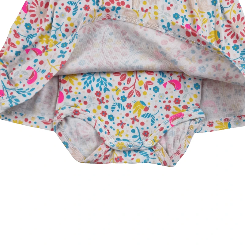 Une adorable barboteuse avec jupe intégrée, parfaite pour l’été. Son imprimé fleuri coloré apporte beaucoup de fraîcheur tout en restant confortable pour bébé.