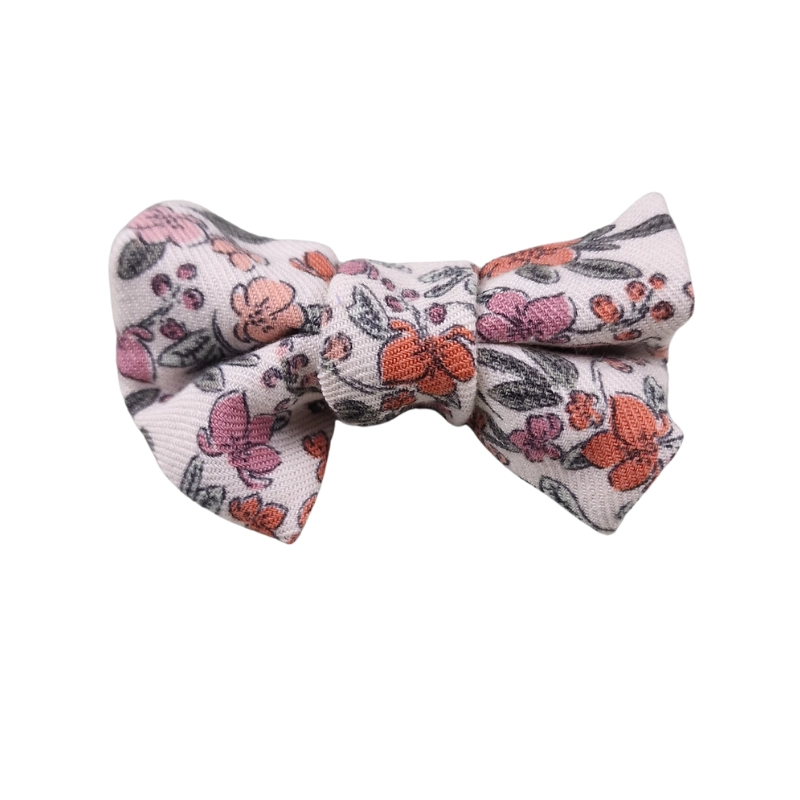 Cette barrette upcyclée a été réalisée à partir d’une robe Vertbaudet soigneusement revalorisée par La Créa’Laeti. Son tissu écru orné de fleurs roses et orangées apporte une touche douce et délicate à la coiffure.
