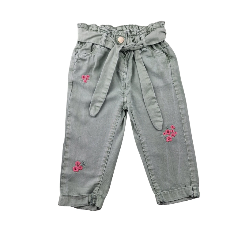 Confortable et facile à porter, ce pantalon TAO 12 mois est confectionné dans une toile légère, idéale pour le quotidien et les beaux jours. Sa teinte vert doux est joliment rehaussée de broderies florales, apportant une touche délicate à la tenue.