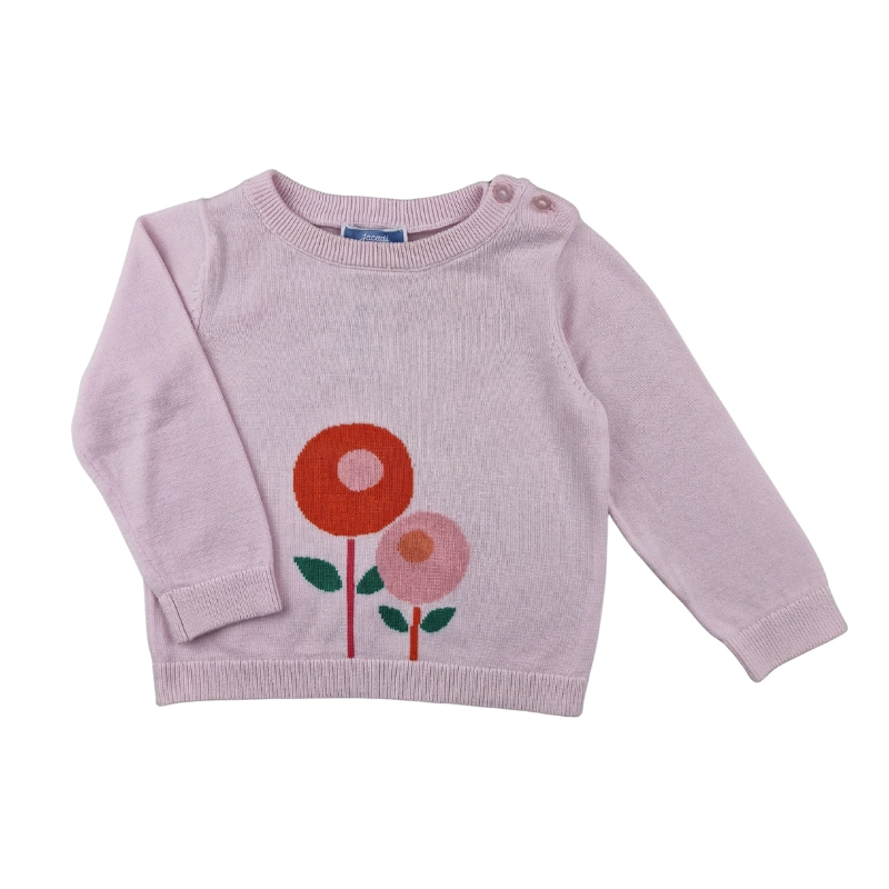 Doux et délicat, ce pull Jacadi 12 mois séduit par sa teinte rose pâle et son motif fleurs sur le devant, idéal pour une tenue chaleureuse et élégante.