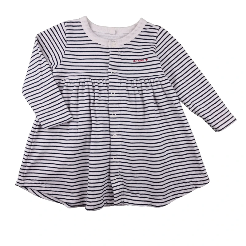 Une robe de seconde main en très bon état, idéale pour le quotidien de bébé, alliant confort, douceur et petit message plein de tendresse.