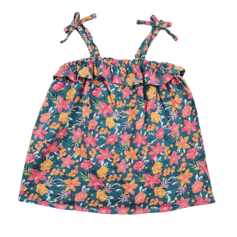 Top TAO 3 ans – vert foncé à motifs fleuris