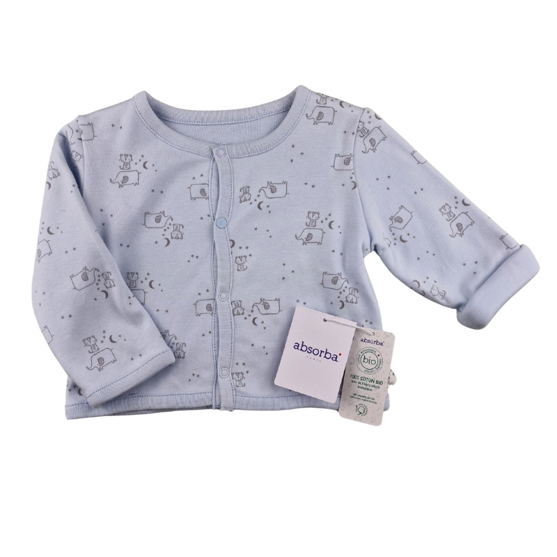 Une veste Absorba neuve avec étiquette, en coton bio, parfaite pour compléter une tenue avec douceur, aussi bien pour la maison que pour les sorties.